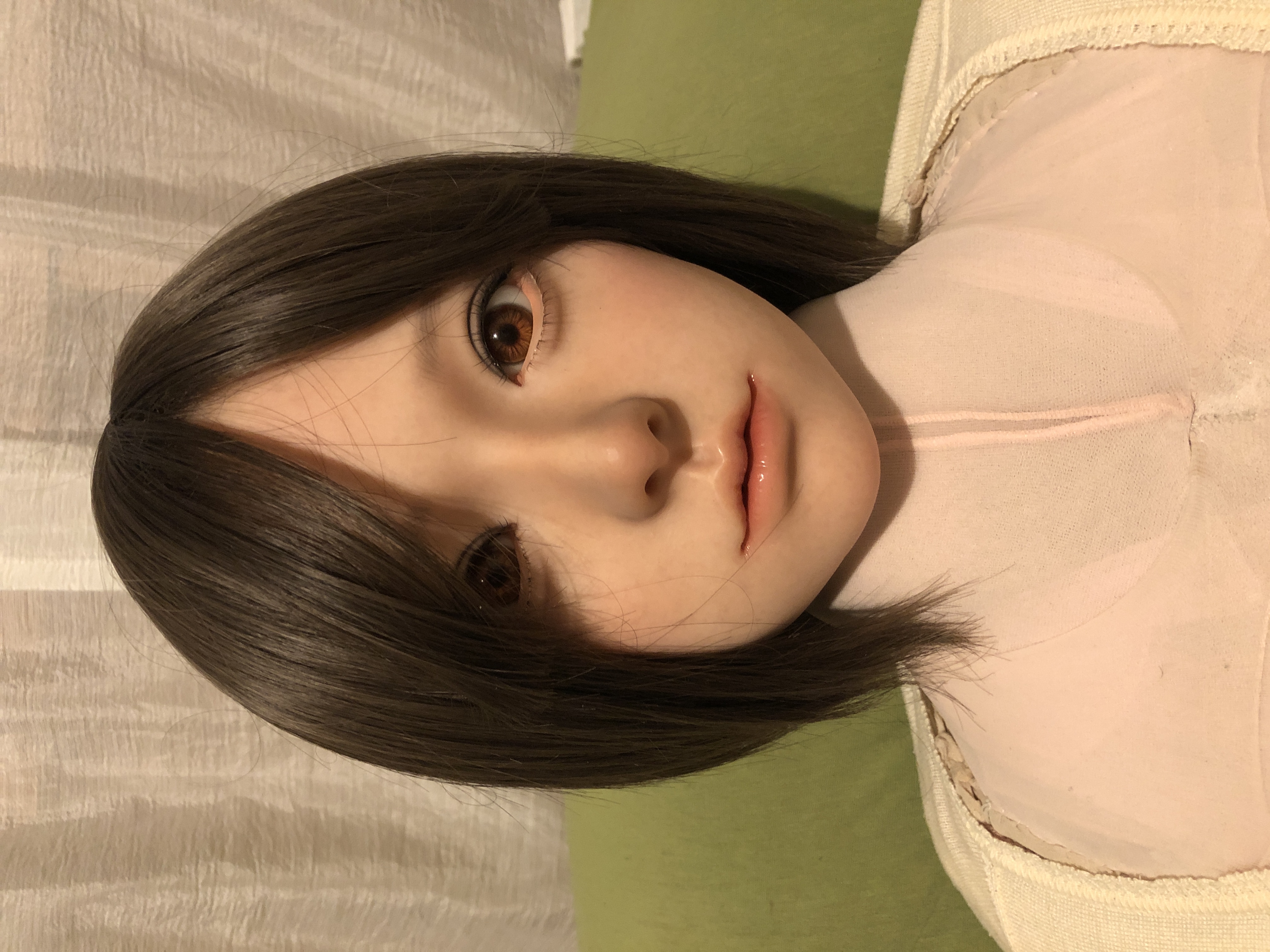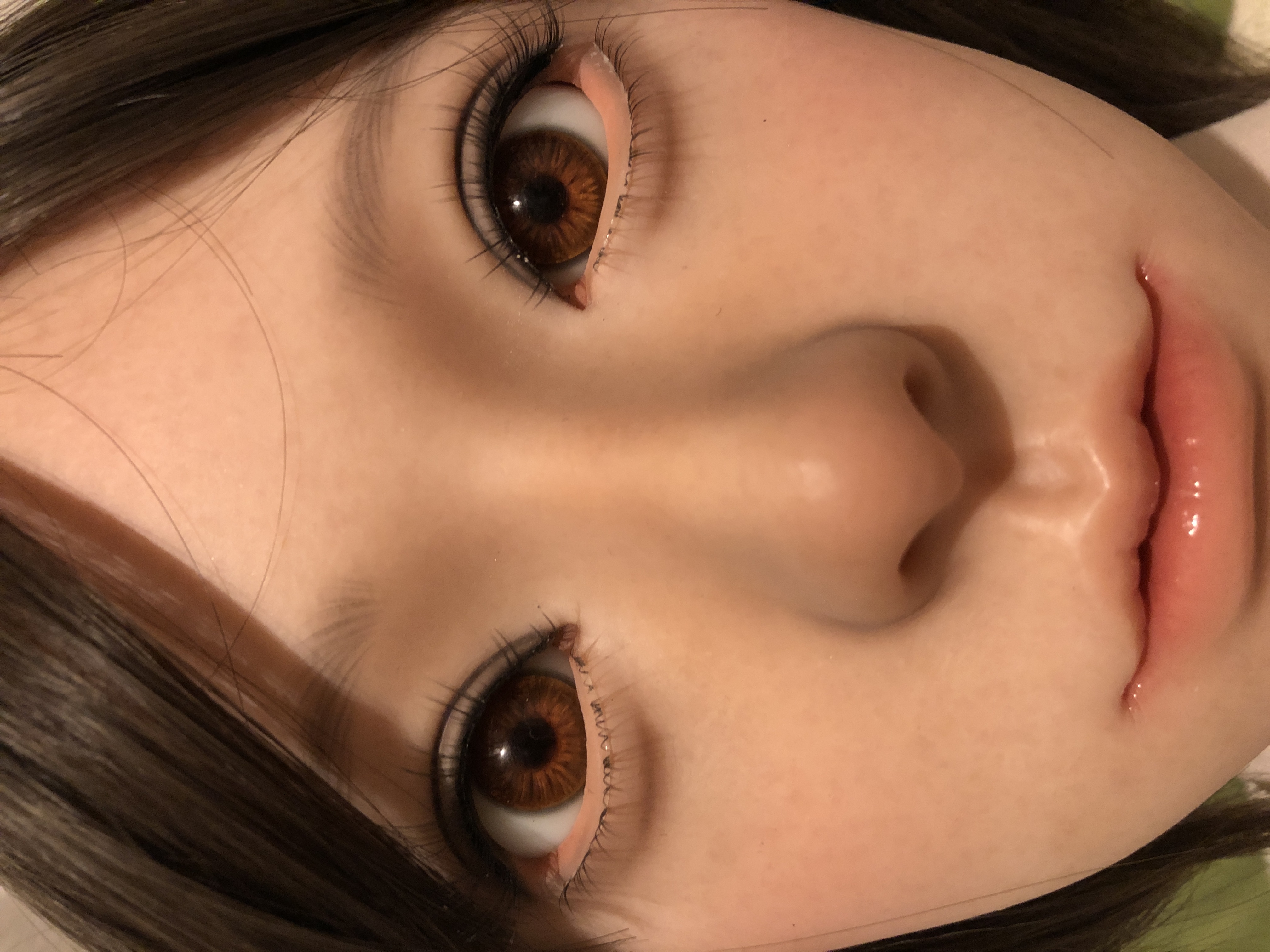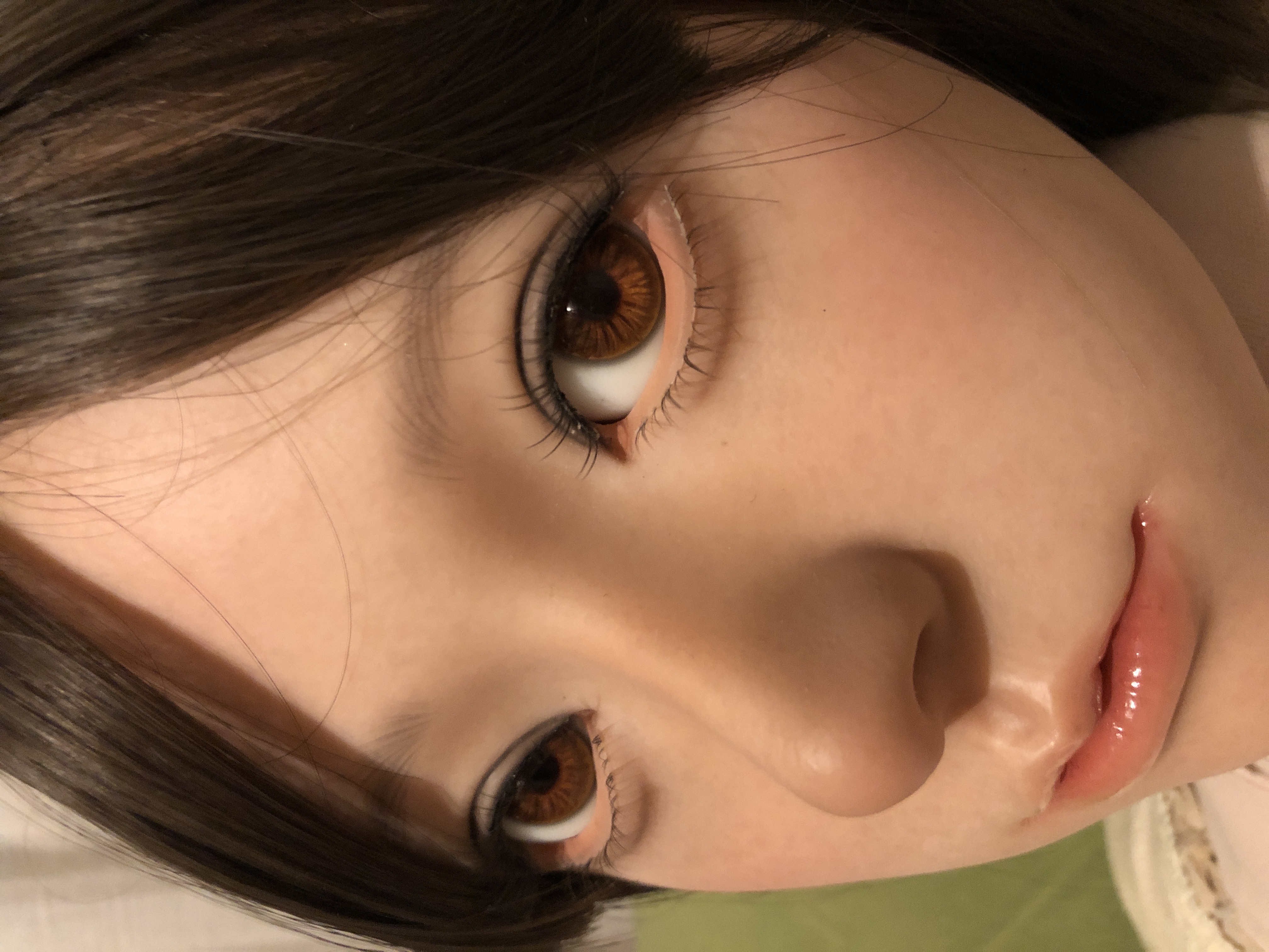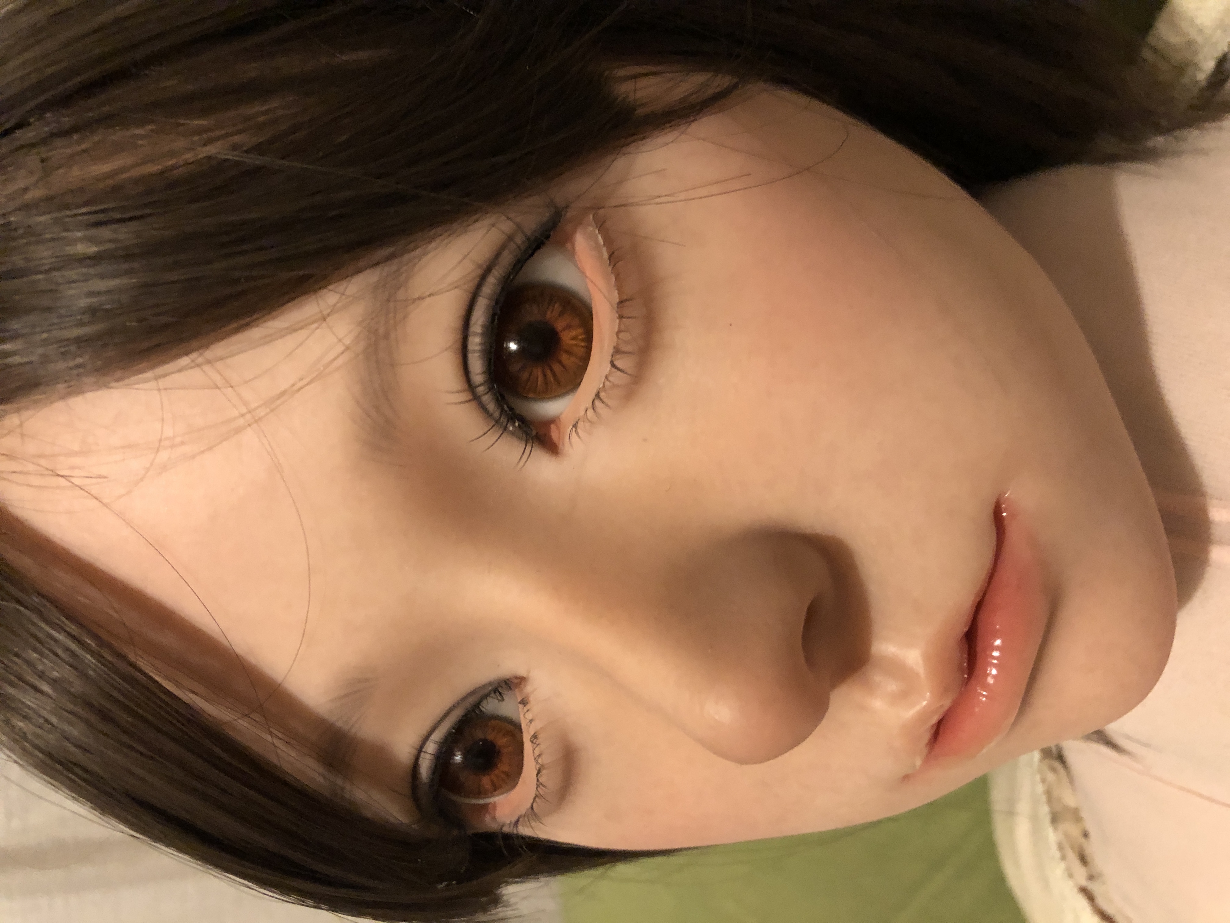 植毛の眉毛とまつ毛はとても繊細で美しい。だけども、こはるのチャームポイントな大きな眼窩で眼球がちょっとの事でクリクリまわり視線が定まりづらく、植毛のまつ毛を綺麗なまま維持出来るのがとても心配。。。