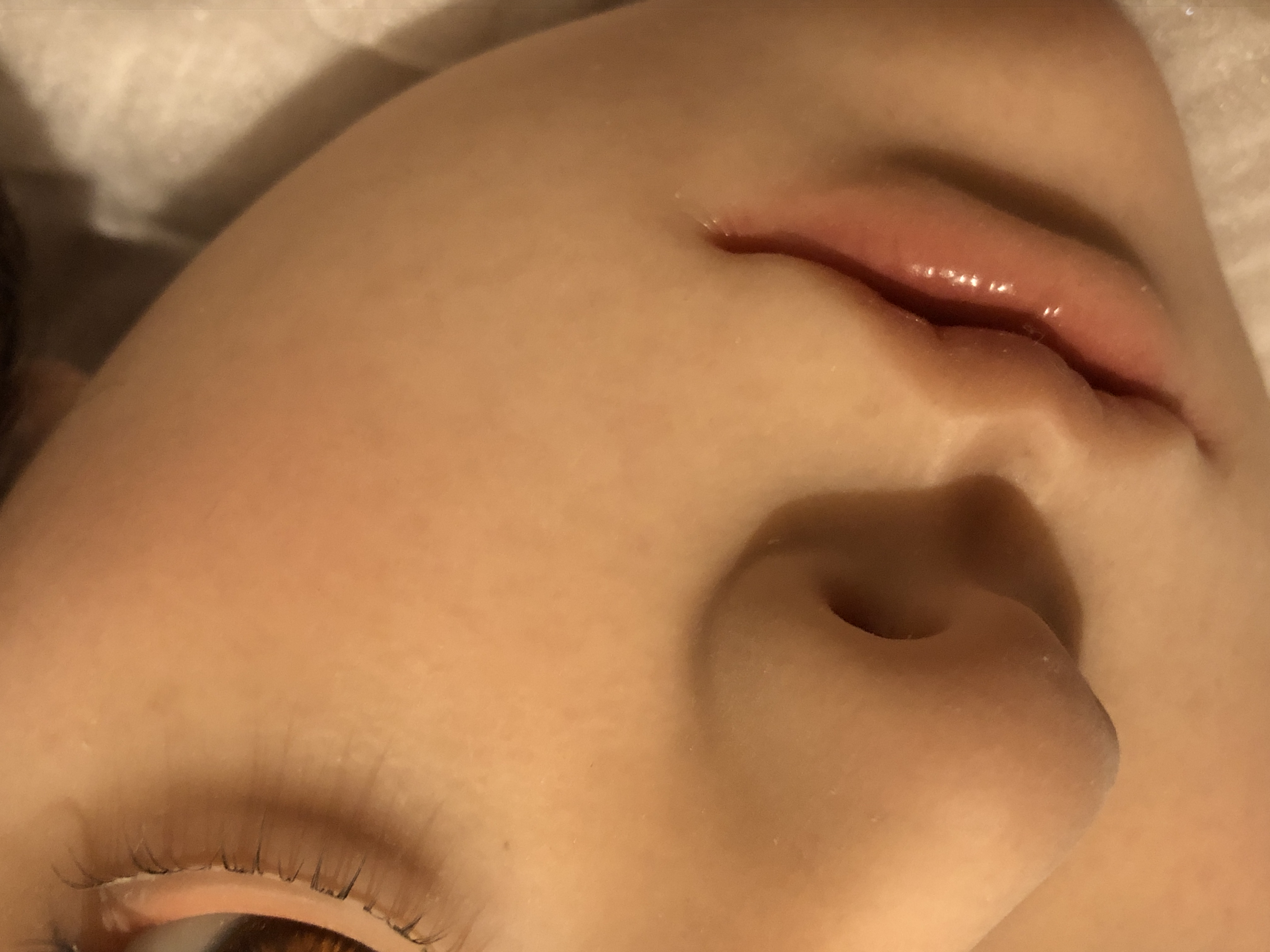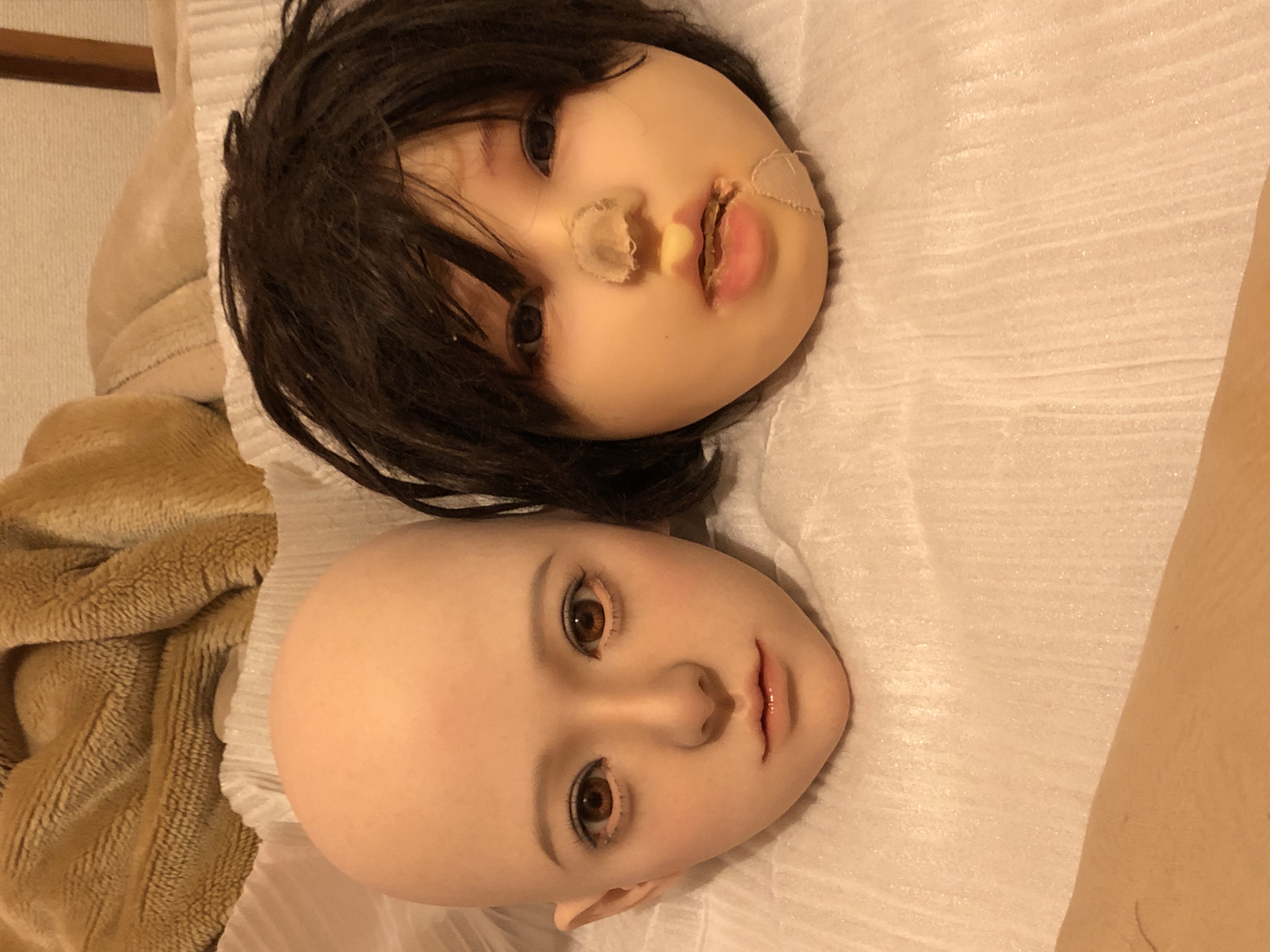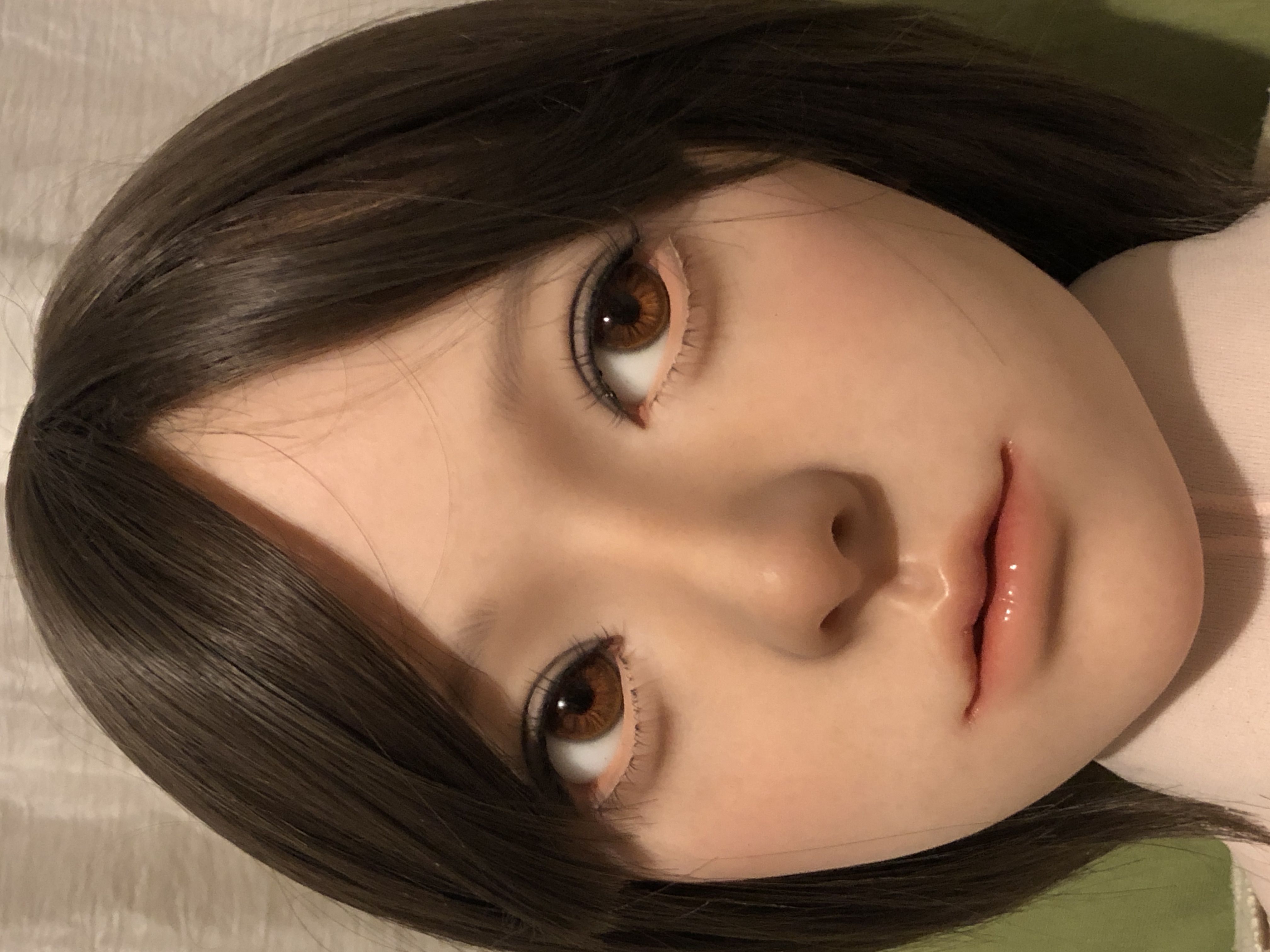 植毛の眉毛とまつ毛はとても繊細で美しい。だけども、こはるのチャームポイントな大きな眼窩で眼球がちょっとの事でクリクリまわり視線が定まりづらく、植毛のまつ毛を綺麗なまま維持出来るのがとても心配。。。