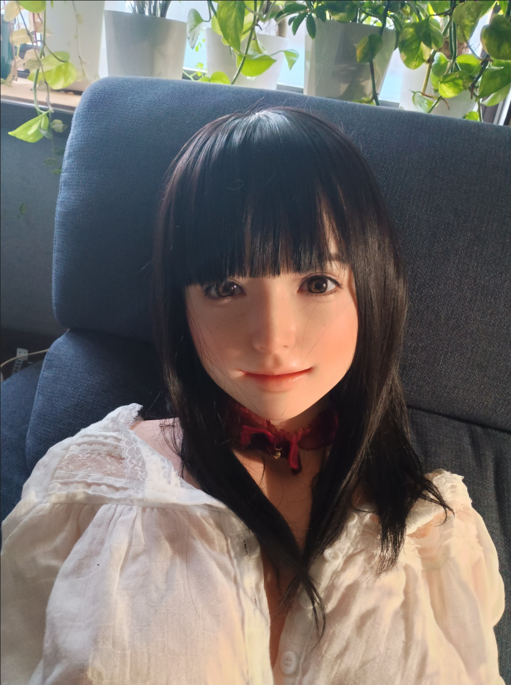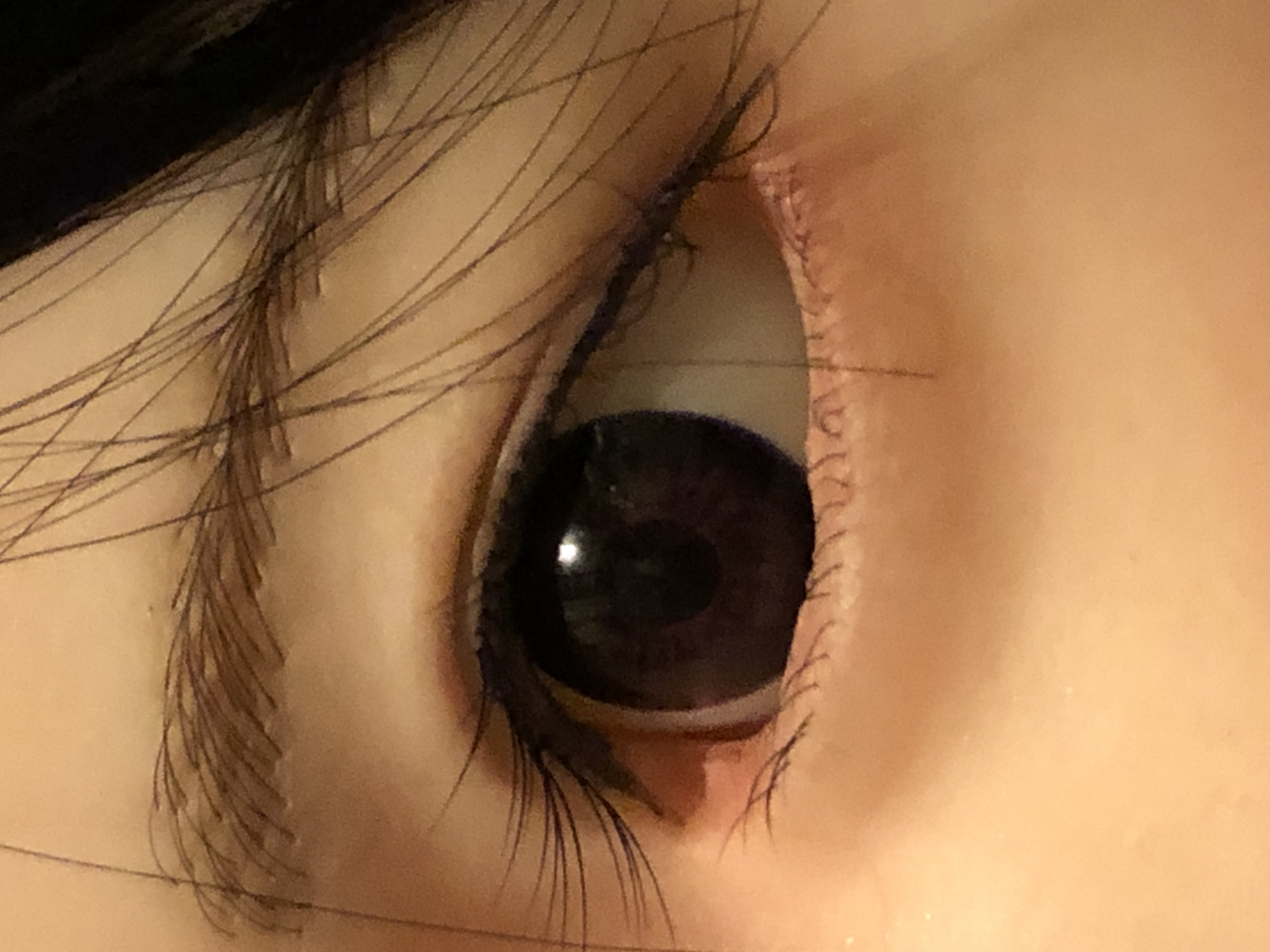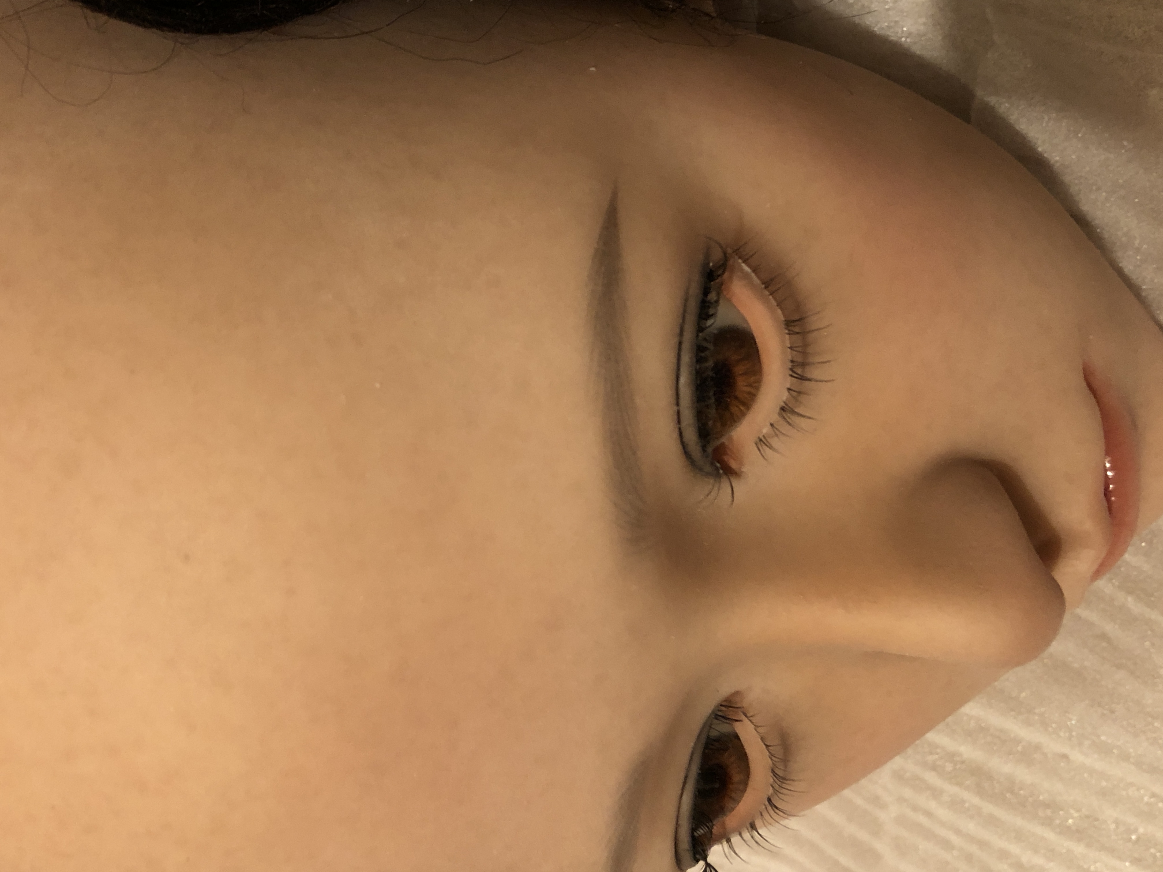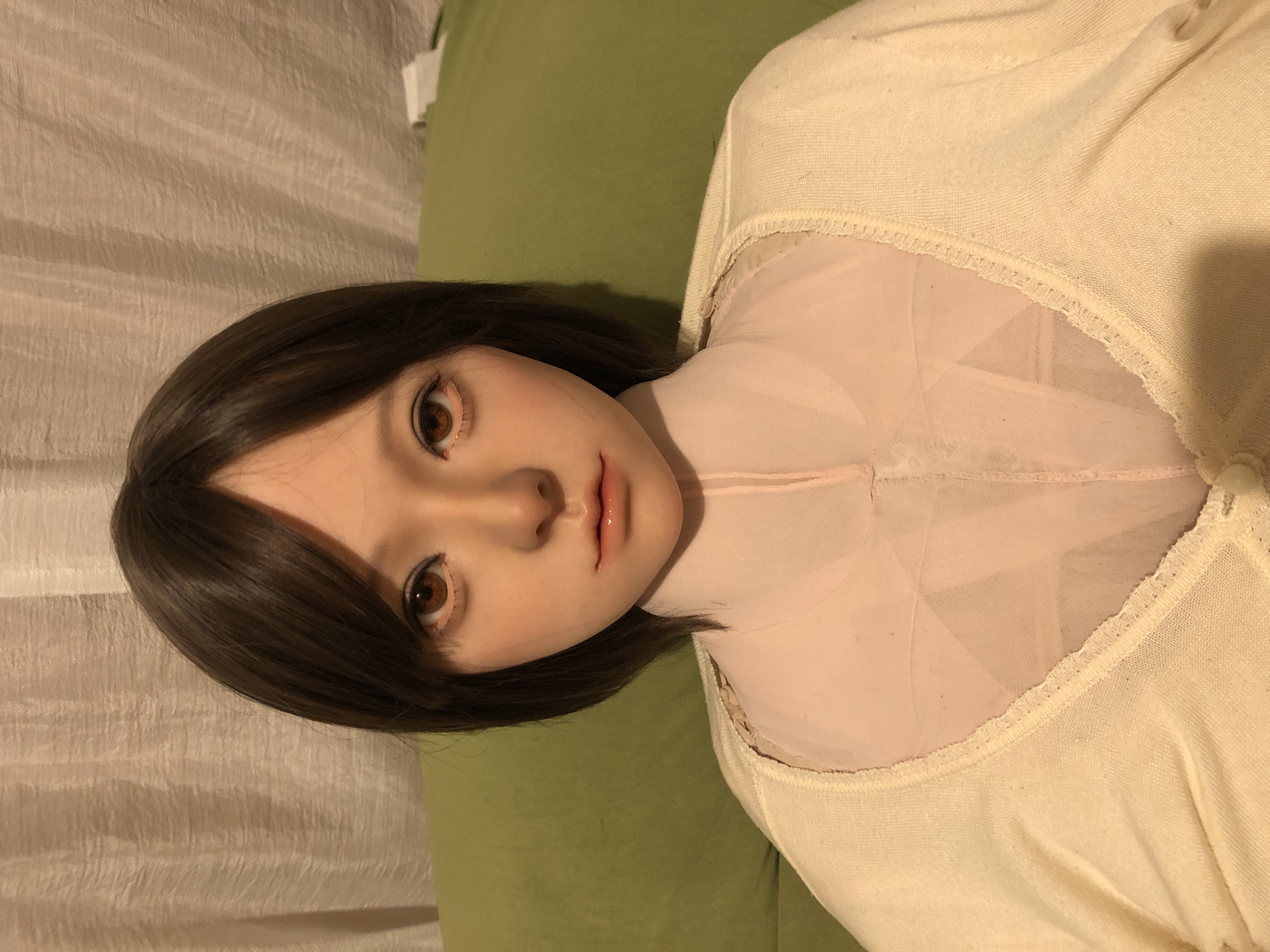 植毛の眉毛とまつ毛はとても繊細で美しい。だけども、こはるのチャームポイントな大きな眼窩で眼球がちょっとの事でクリクリまわり視線が定まりづらく、植毛のまつ毛を綺麗なまま維持出来るのがとても心配。。。
