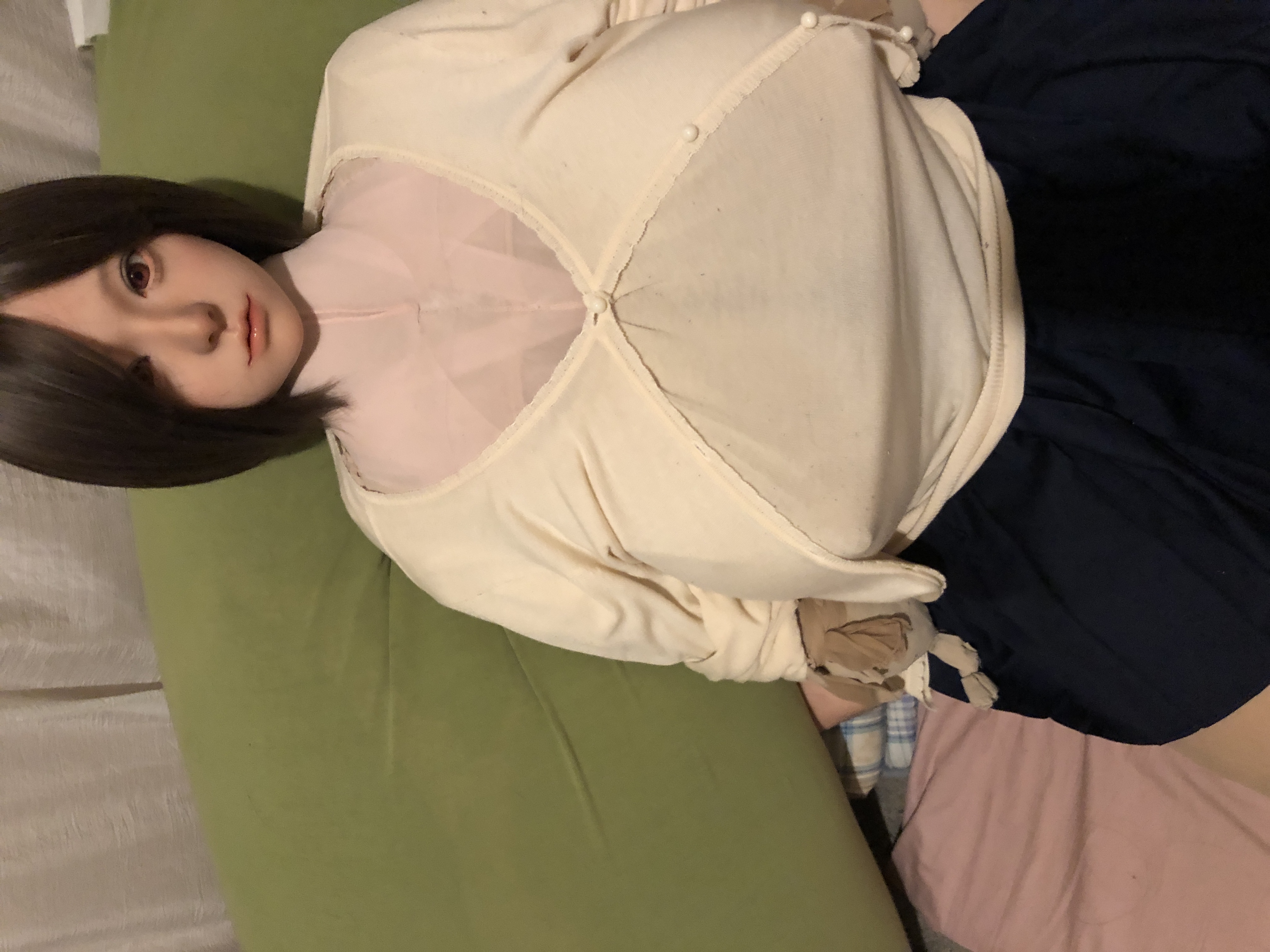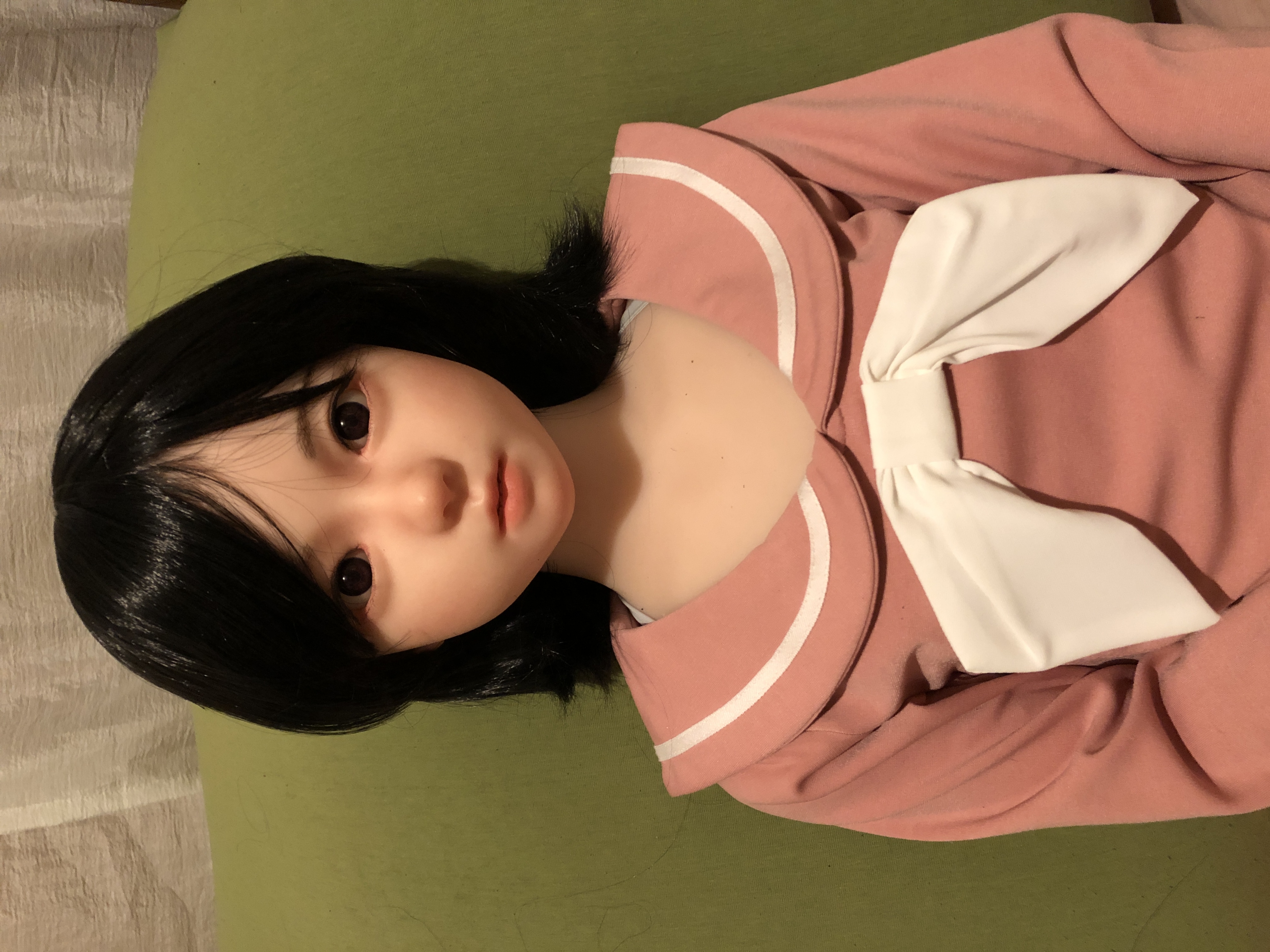 ボディは軽量でとても扱い易い、以前40キロ近くのドールを購入し苦労した事もあり重さの重要さをしみじみ感じている。胸、腹筋、お尻にメリハリのある造形で可愛らしい。裸にすると本当にイケナイ事をしている気分になる笑