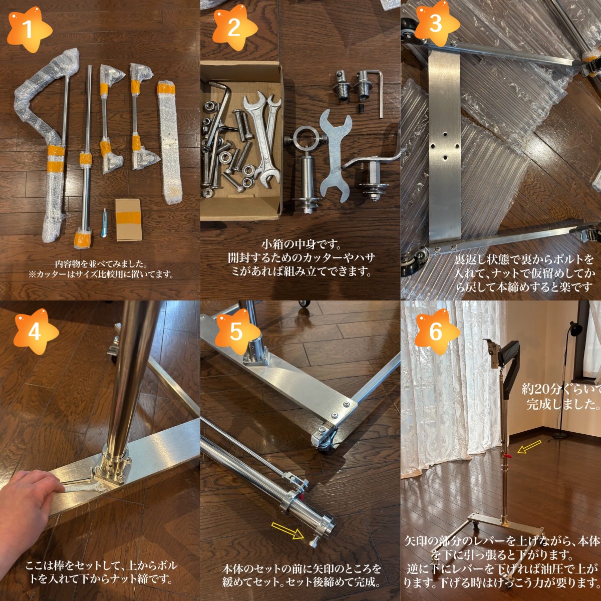 2体目のTOP-CYDOLL176㎝Gカップの展示保管用として第三モデルを購入。ドールスタンドは2個目。1個目は楽園ドールさんでも販売されている後ろに大きな突起構造が有るドールスタンドを他代理店で購入した。そのスタンドは構造が複雑で手動式であったため昇降や下降がかなり面倒でコツが必要、組み立てもかなり面倒であった。構造上はこの第三モデルの方が単純で優れている。組み立ても構造が単純な故にかなり楽であった。しかも耐荷重量も60㎏と優れている。昇降下降もハンドルを回すだけなので力も必要ない。不安な点としては支柱が空洞で金属部分が薄い。下部のビス4本でへこむほど。耐久性が少し気になるので星は4個とする。それ以外では高品質、安価なので満足している。耐久性に問題が無ければ次も購入する予定。メーカーへの要望としては、1個目のドールスタンドもそうであったが、組み立て方法の解説図を付けてくれたら初めて購入する人でも問題なく組み立てられると思う。